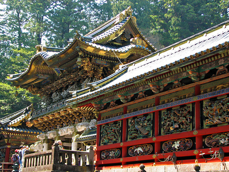 Designated a National Treasure, the exterior wall of the building extending to the left and right of Yomeimon Gate is decorated with flower and bird carvings that are considered among the best in Japan. All the carvings are single-panel openwork painted in vivid colors.