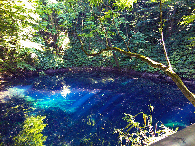 Lake Juniko consists of 33 lake and ponds that are scattered in the western part of the World natural Heritage Site Shirakami-Sanchi.One of the them is called Aoike (literally “blue pond”), the surface of which is enchantingly shining and beautiful, like blue ink melting.