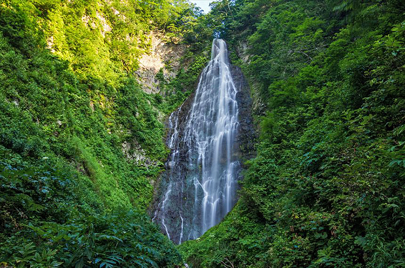 This waterfall has a drop of 85 m. It is counted among the 100 Famous Japanese Waterfalls, and is one of the largest in Aomori Prefecture. It is a roughly 15 minute walk from the parking lot.