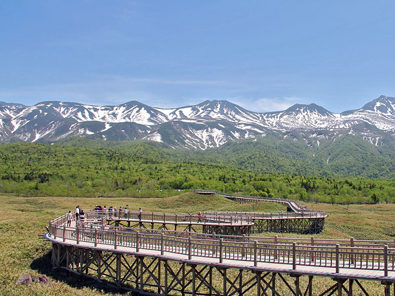 Here visitors can see the beautiful scenery of five lakes surrounded by primeval forests dotting the landscape, with the Shiretoko mountain range and primeval forests reflected in the surfaces of the lakes. The periods in which Shiretoko Goko Lakes is open are divided up into three stages: the Bear Aware Season, Ecosystem Aware Season, and the free use period, with visitors being required to apply certain entry procedures or take a lecture depending on the time period to use walks on the ground. Visitors are allowed to freely stroll along the elevated boardwalk on which an electrified fence for repelling bears has been installed. See the Shiretoko Goko Lakes Field House website for details.