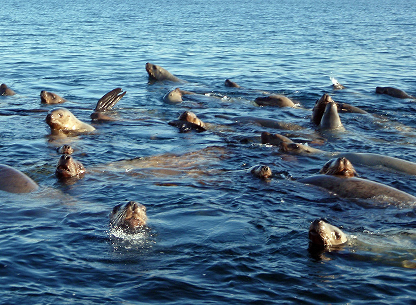Herds of around 100 Steller sea lions which primarily consist of females migrate to the coastal waters of the Shiretoko Peninsula. They mate in the seas adjacent to Russia, and pregnant individuals come here to build up their nutritional reserves in order to give birth. In Shiretoko, they feed mainly on Walleye pollock.